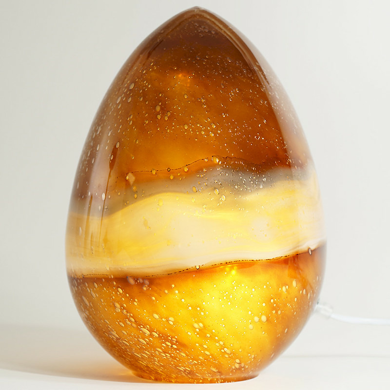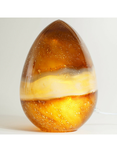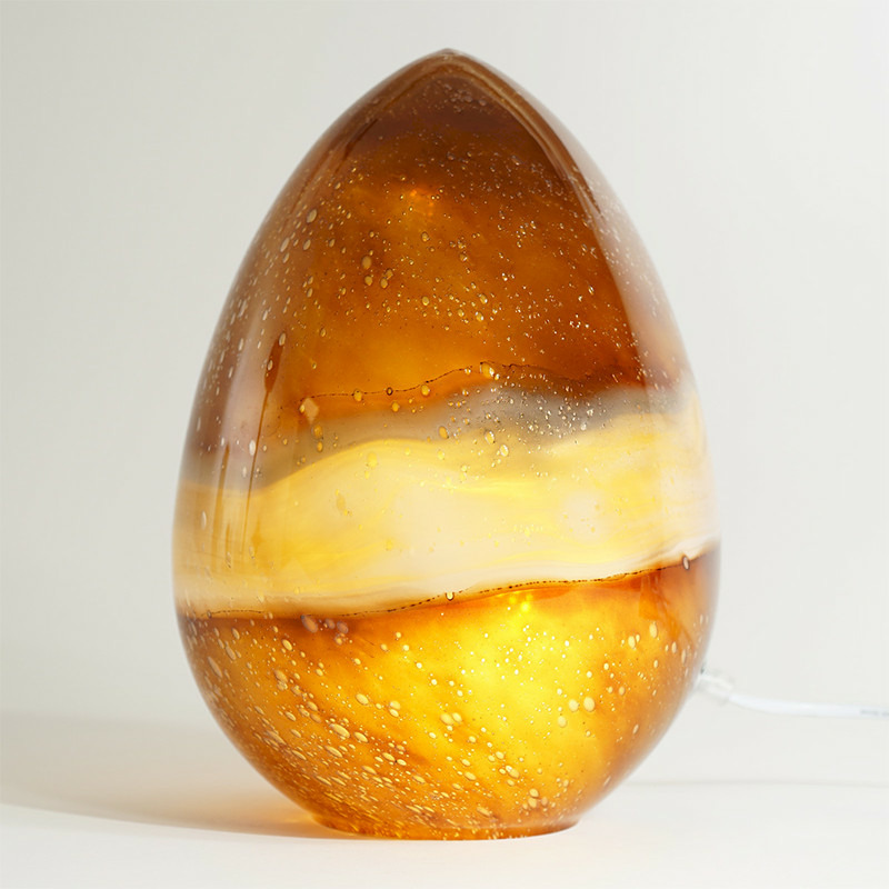 La lampe œuf en verre ambre est idéale pour les endroits où vous souhaitez une lumière d'ambiance chaleureuse plutôt qu'un éclairage fonctionnel intense.