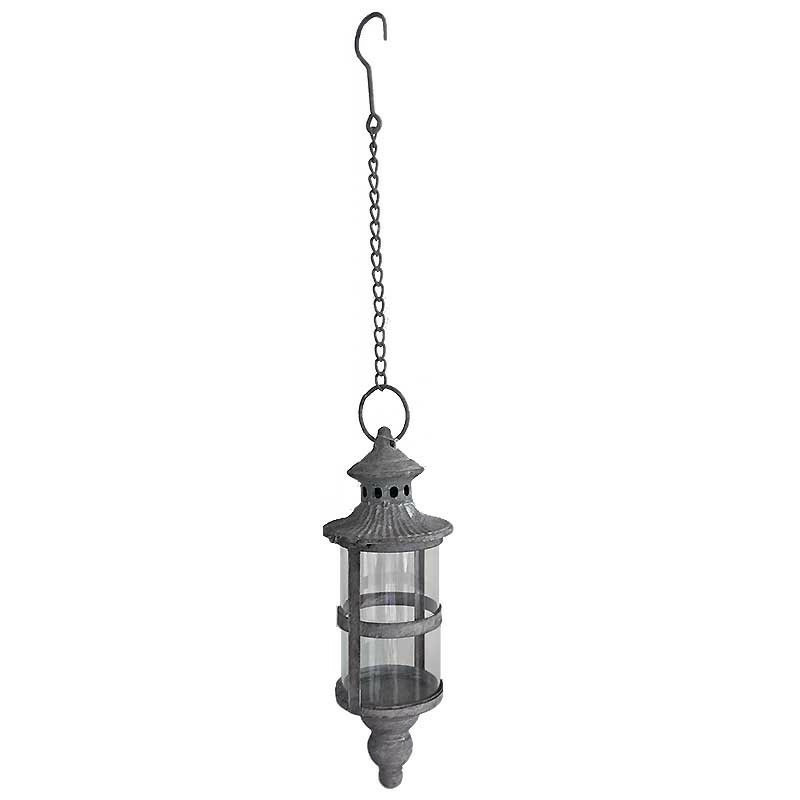 La lanterne suspendue fer gris est un véritable objet de charme, conçu pour transformer n'importe quel espace en lieu empreint de douceur et de caractère. Sa structure en fer au fini gris patiné évoque les lanternes des rues d'autrefois, apportant une dimension nostalgique et élégante à votre décoration.