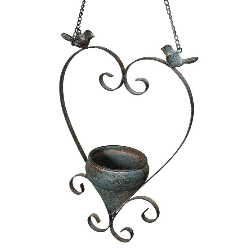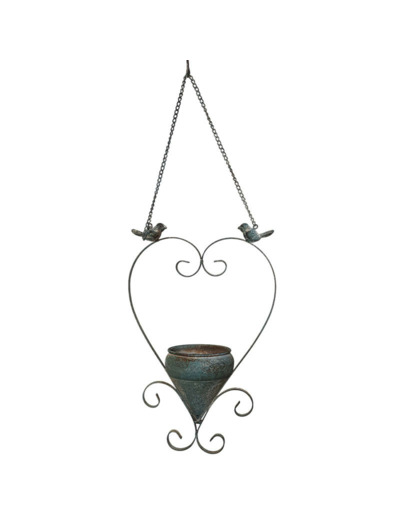 Le fer affiche une légère patine rouillée, ajoutant du caractère à l'ensemble. Placée dans votre jardin, cette mangeoire à oiseaux attire le regard et apporte une touche de poésie rustique à votre espace extérieur.