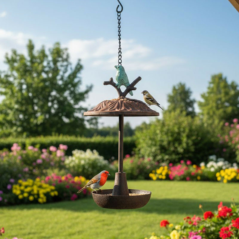 Cette jolie mangeoire présente un design raffiné avec un oiseau bleu gris perché sur une branche, apportant une touche de charme et de sophistication à votre jardin. La finition rouille patinée confère un aspect vintage et rustique, idéal pour embellir vos espaces extérieurs.
