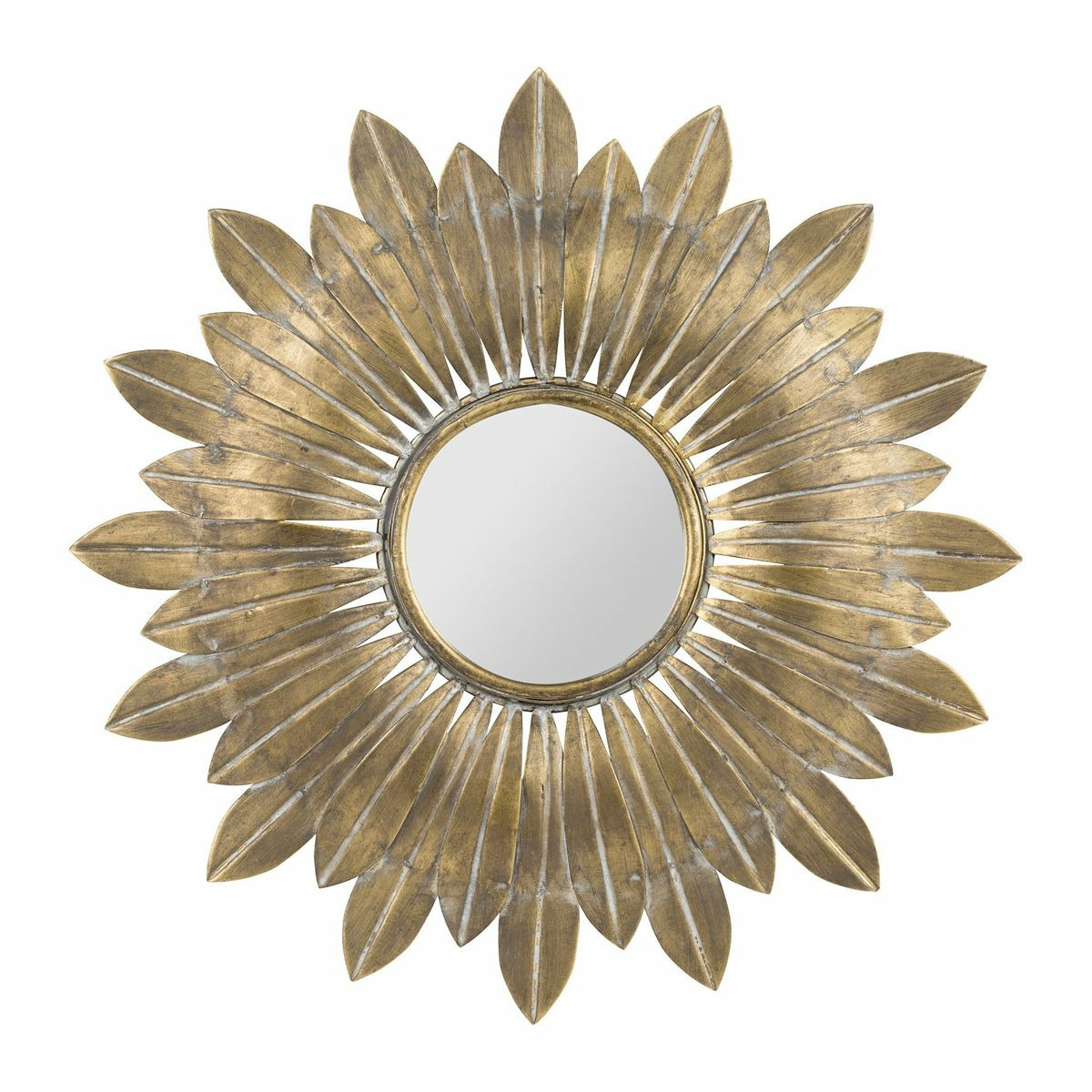 Embelissez votre maison grâce a ce magnifique miroir doré en fer et forme de soleil.