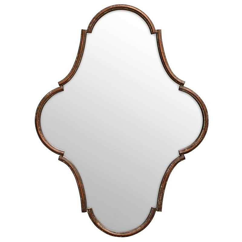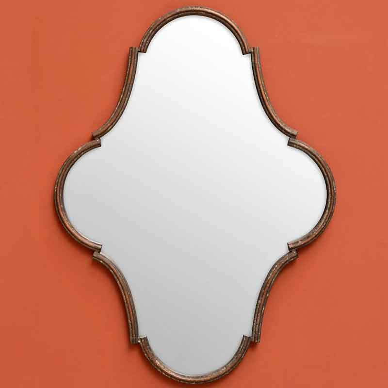 Ce grand miroir nuage est réalisé en métal patiné de couleur cuivré.