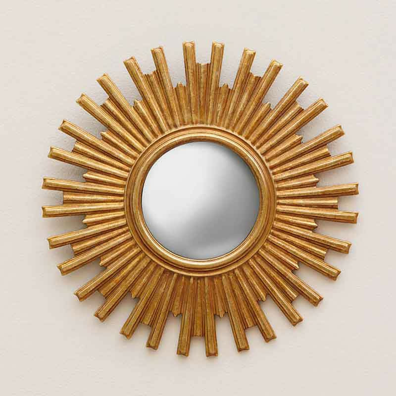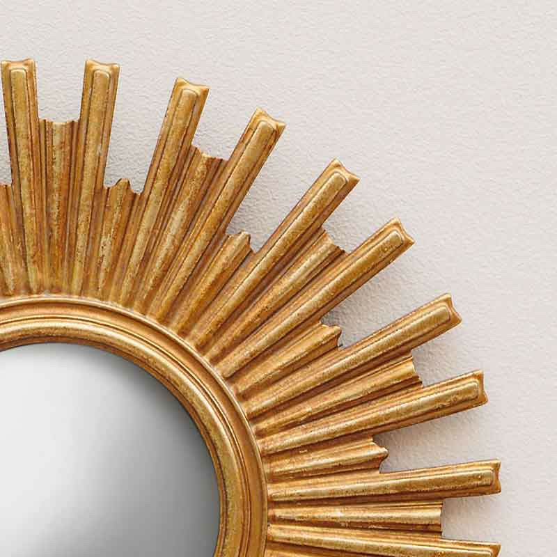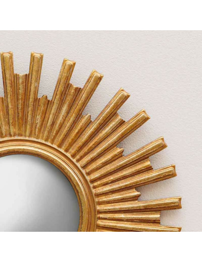 Ce miroir convexe doré Joy se distingue par son design inspiré du soleil, symbole de lumière et d'énergie.