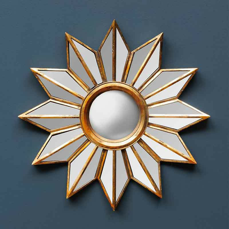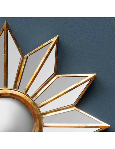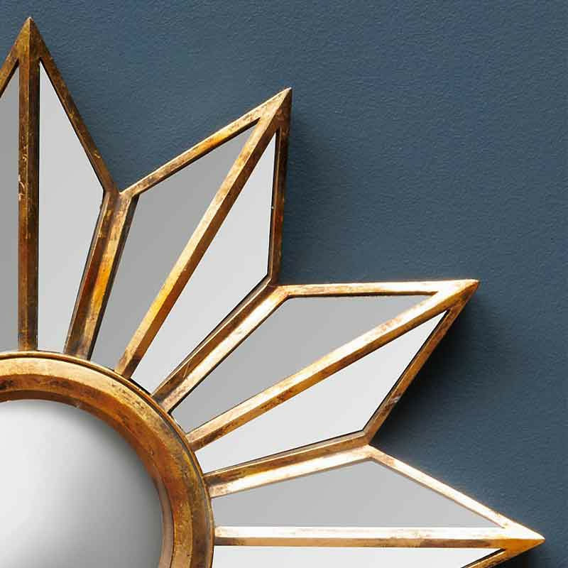Dans un salon ou une chambre, ce miroir soleil devient un point focal artistique au-dessus d'une cheminée, d'un meuble ou d'un lit.