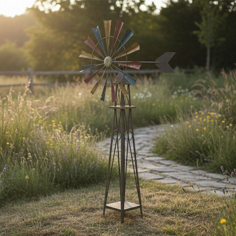 Entourez la base de la tour d'un grand anneau de galets blancs ou de bois flotté pour mettre en valeur la patine rouille et la hauteur de l'éolienne.