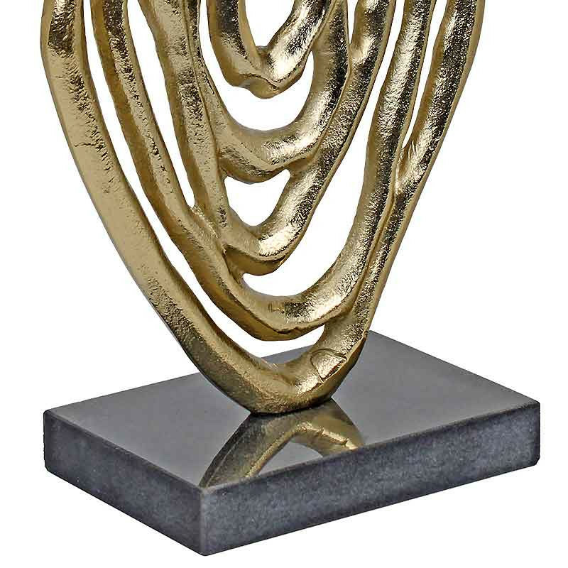 Cette jolie statuette ajoutera une dimension artistique à votre intérieur avec ces formes fluide et harmonieuses dorée. Le mariage du doré lumineux et du marbre noir offre un contraste visuel saisissant, créant un impact visuel immédiat !