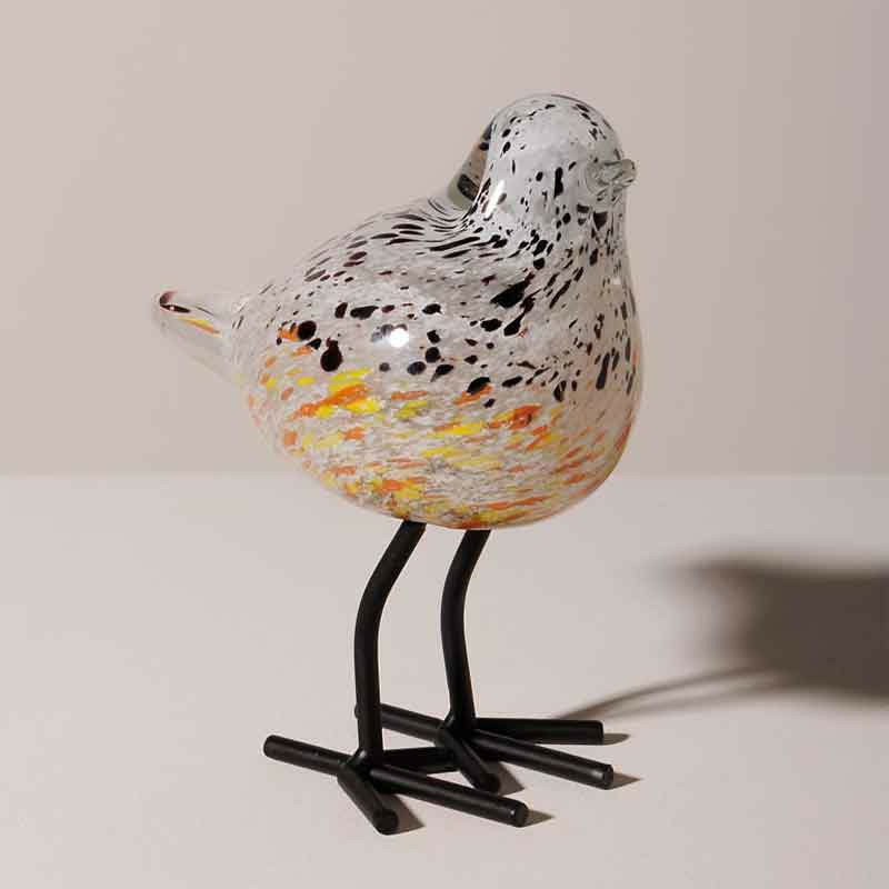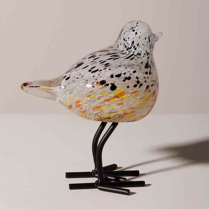 Cet oiseau décoratif moucheté sur pied trouvera aisément sa place dans de nombreux espaces de votre maison.