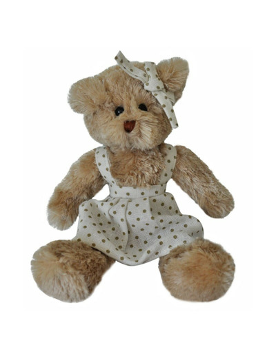 Ornée d'une jolie robe écrue à pois pouvant être retirée ainsi qu'un magnifique noeud, elle apportera de la tendresse et du confort à votre enfant.