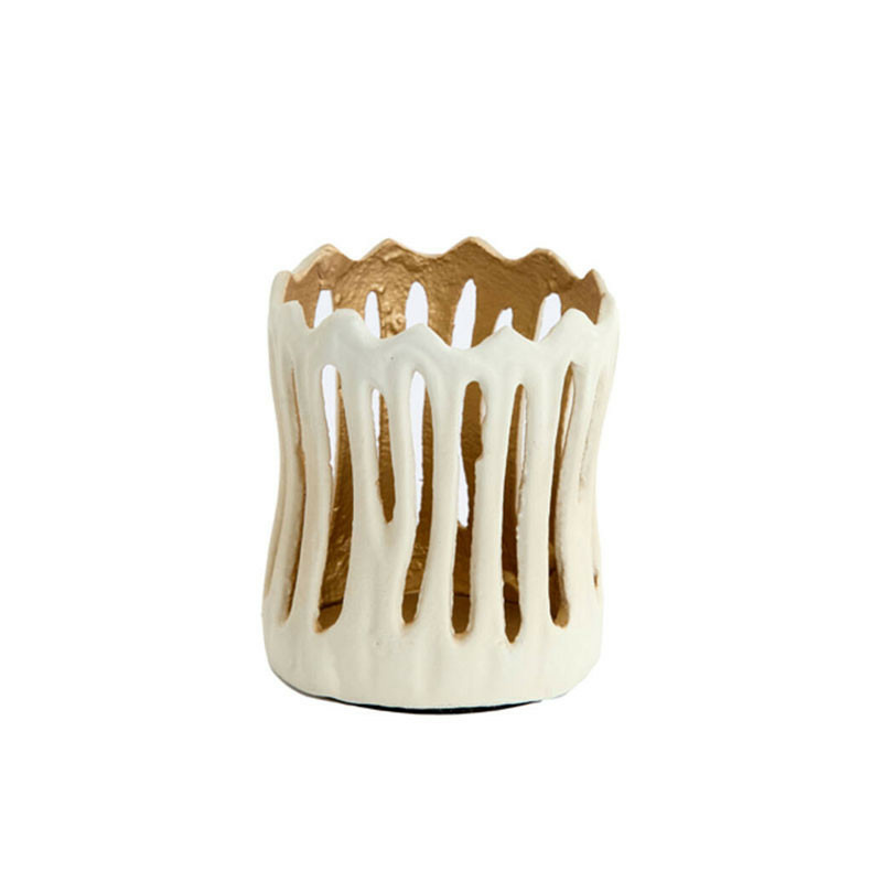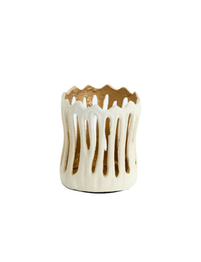Ce petit bougeoir est idéal pour ponctuer la décoration d'une table basse, d'un rebord de fenêtre ou d'une étagère de salle de bain. Son contraste blanc et or s'intègre à merveille dans un univers Moderne Chic ou Scandinave.