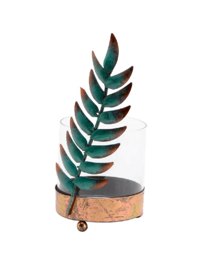 Décorez votre intérieur avec ce magnifique photophore et sa jolie feuille. Posé sur une console, un bureau ou une table, ce bougeoir fera office d'élément de décoration. Installez une petite bougie au centre et il illuminera votre pièce de vie.
