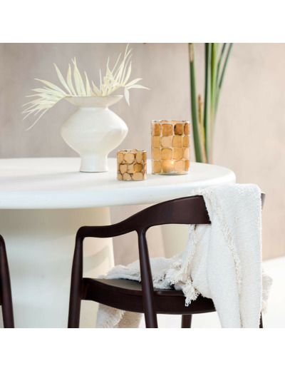Grâce à sa hauteur et à son diamètre, ce photophore peut également être utilisé comme un vase audacieux pour des bouquets courts et volumineux, ou comme un pot décoratif pour des plantes d'intérieur. C'est un article polyvalent qui offre plusieurs possibilités de décoration.