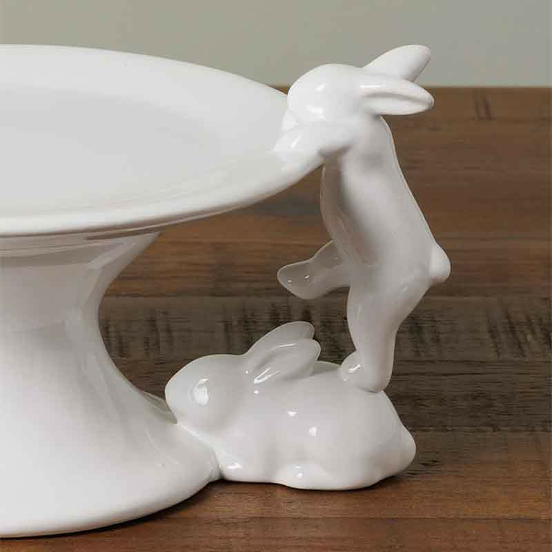 Votre magnifique plat 2 lapins dolomite blanche 9x17x14cm est idéal pour embellir une table basse dans un salon, où il peut accueillir des douceurs ou des petits biscuits avec une note ludique et élégante.