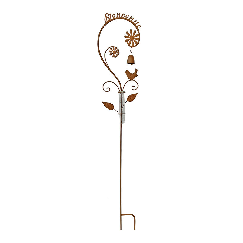 Somptueux pluviomètre orné de son joli oiseau, de son slogan "Bienvenue" et de son verre gradué qui vous permettra de contrôler la quantité de pluie.