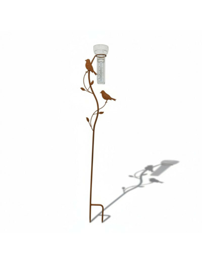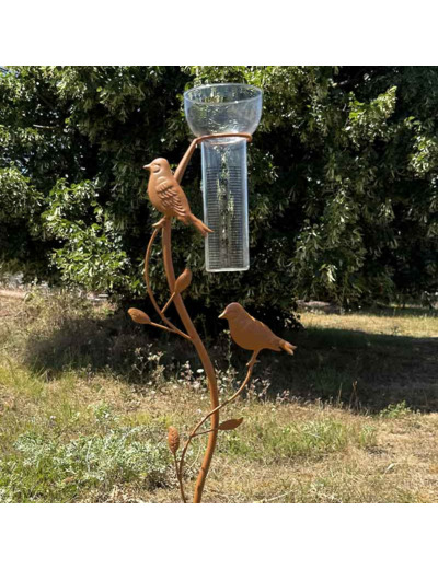 Apportez une touche d'élégance et de fonctionnalité à votre jardin avec notre pluviomètre en fer orné d'oiseaux.