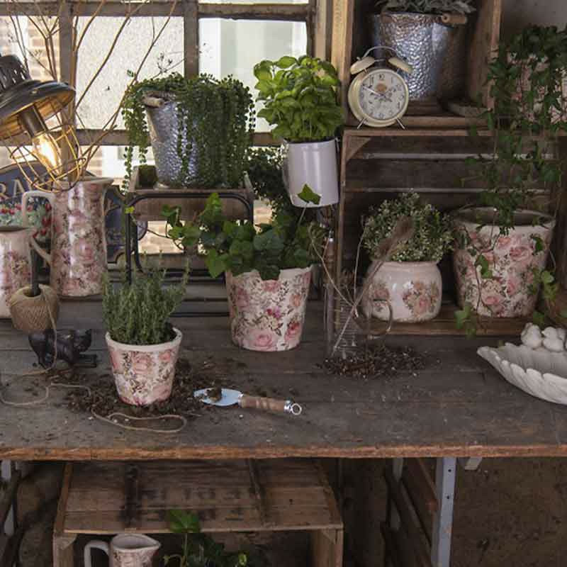 Installez le sur une étagère, un coin de bureau, un rebord de fenêtre ou au centre d'une table pour mettre en valeur une plante verte, une fleur colorée ou un aromate. Son motif floral aux teintes douces – rose, mauve, vert tendre et crème – crée une ambiance romantique, inspirée des jardins anglais.