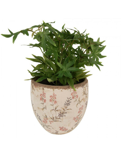 Ce pot de fleurs en céramique peut être placé sur un rebord de fenêtre pour profiter de la lumière naturelle, utilisé comme pièce maîtresse sur votre table de salon avec une belle plante, intégré sur un buffet ou une console pour ajouter une touche romantique à votre décoration, et enfin, placé sur une étagère avec d'autres objets décoratifs pour créer une composition harmonieuse qui met en valeur ses motifs floraux délicats.