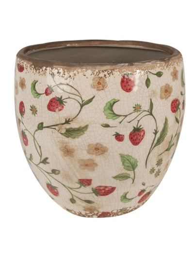 Avec son design de fraises, ce pot de fleurs s'intègre harmonieusement aux décors Shabby Chic, rustiques et champêtres.
