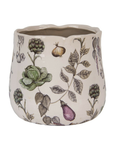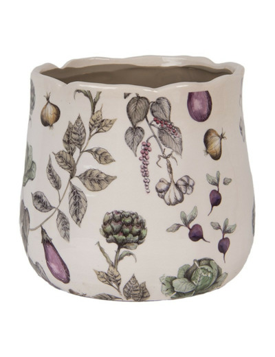 Ce pot de fleurs peut être placé sur le rebord de fenêtre ensoleillé de votre cuisine pour rappeler les motifs de légumes présents sur le pot.