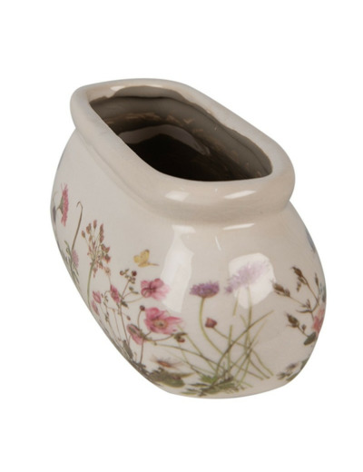 Le style de ce pot est romantique, champêtre et Shabby Chic. Il évoque l'atmosphère sereine d'un jardin anglais fleuri ou d'une prairie en été.
