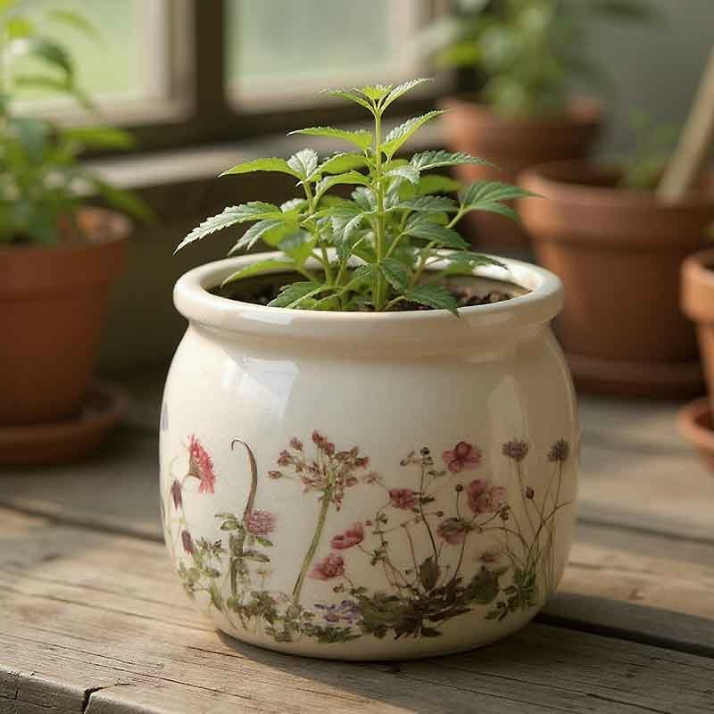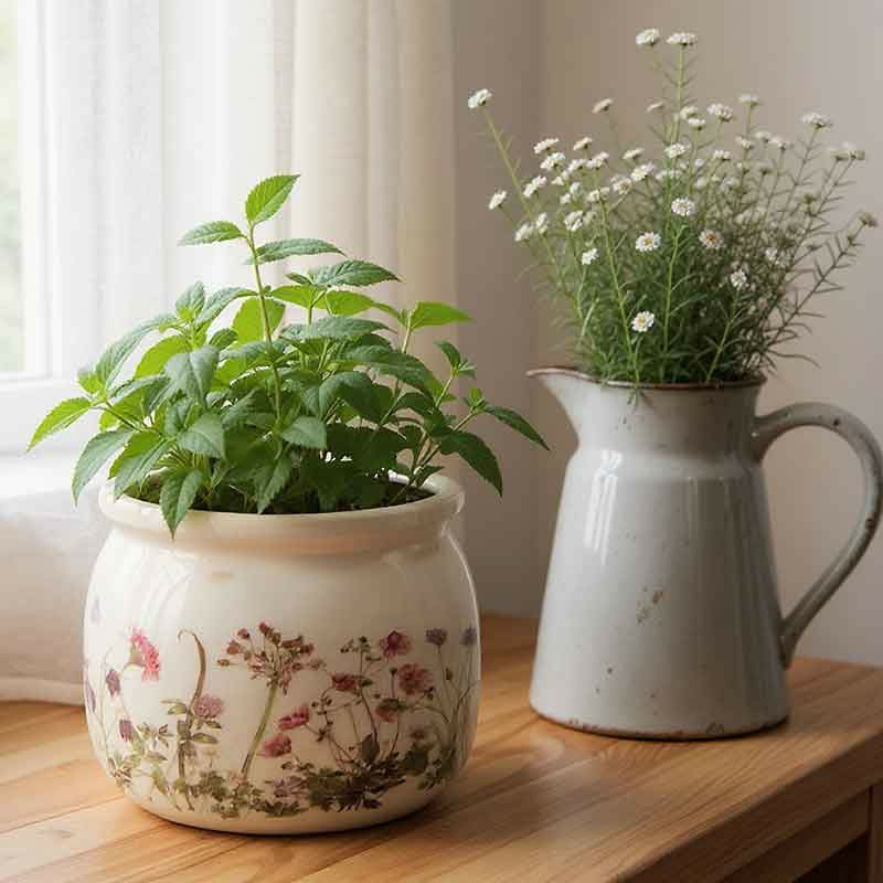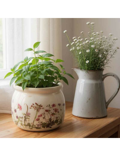 Vous pouvez utiliser ce pot de fleurs comme cache-pot pour mettre en valeur une plante verte, une petite composition florale ou des herbes aromatiques dans votre cuisine. Sa forme élégante et son décor bucolique en font également un charmant vase pour accueillir un bouquet de fleurs fraîches ou séchées.