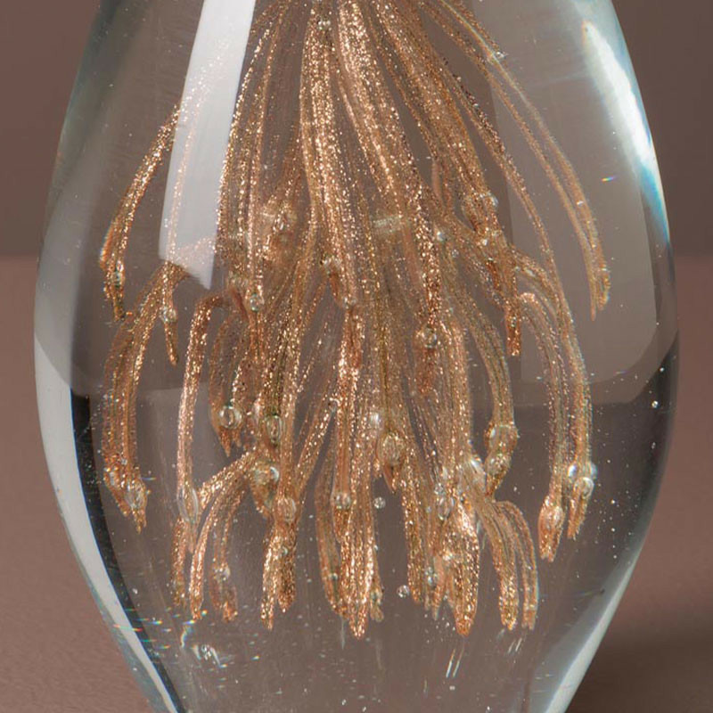 Sa forme artistique en fait également un bel objet de décoration à exposer sur une étagère en verre ou dans une niche murale avec un éclairage direct pour maximiser la brillance et les jeux de lumière internes.