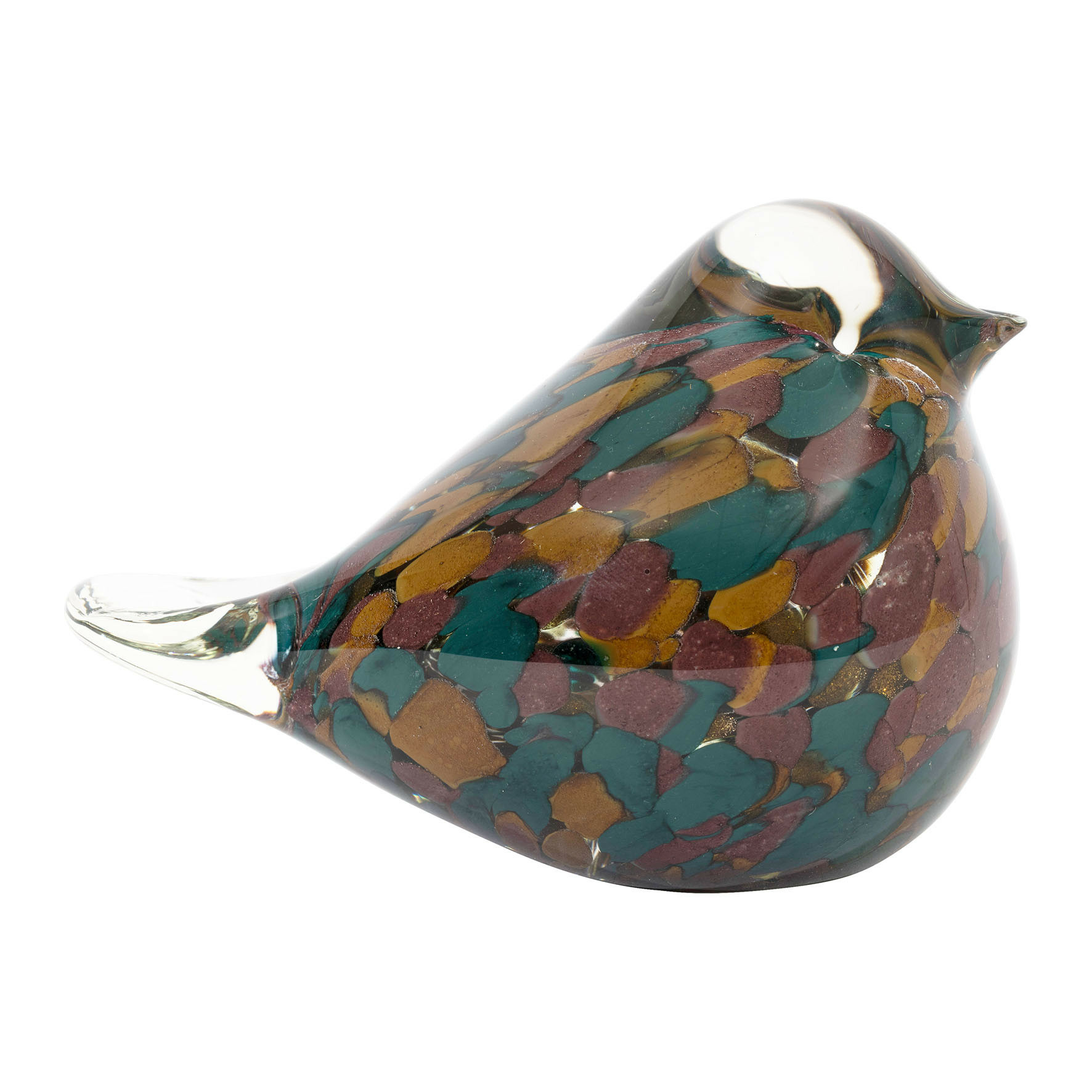 Sur une console dans une entrée sophistiquée, le presse-papier oiseau verre multicolore accueille vos invités avec une note dynamique et élégante.