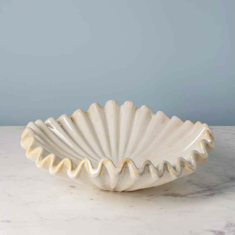 Le saladier beige Médusa en grès combine esthétique et utilité grâce à sa grande taille de 44 cm de diamètre.