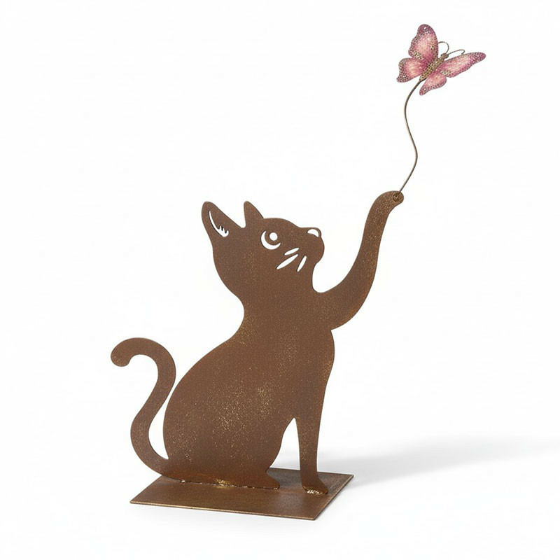 Posée de manière à ce que le papillon semble s'envoler au-dessus des fleurs voisines.
