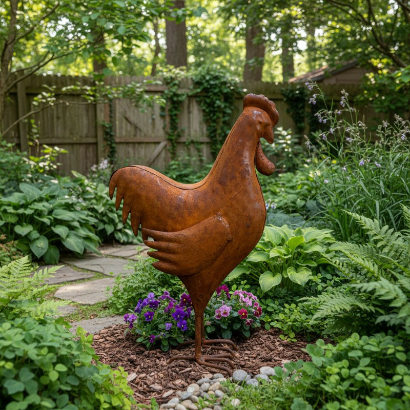 Chaque courbe de son corps évoque la vigueur et la vitalité de la nature, tandis que ses yeux vifs, semblent surveiller avec bienveillance le jardin qui l'entoure. Posez le sur un piédestal en pierre et il contrastera magnifiquement avec le vert des plantes environnantes, ajoutant une touche de caractère rustique et d'élégance campagnarde à l'espace extérieur.