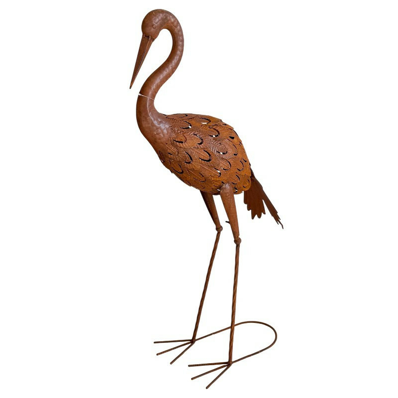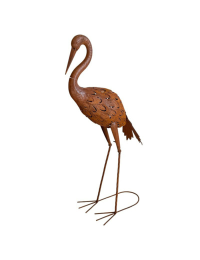 La statuette héron en fer est une véritable œuvre d'art pour le jardin. D'une hauteur de 30 cm, elle capture la majesté de l'oiseau dans une posture unique : un cou délicatement courbé en S, un regard porté vers l'horizon et une silhouette qui semble figée dans le temps. Ce détail subtil apporte une impression de mouvement et de grâce, faisant de ce héron un point focal captivant dans tout aménagement extérieur.