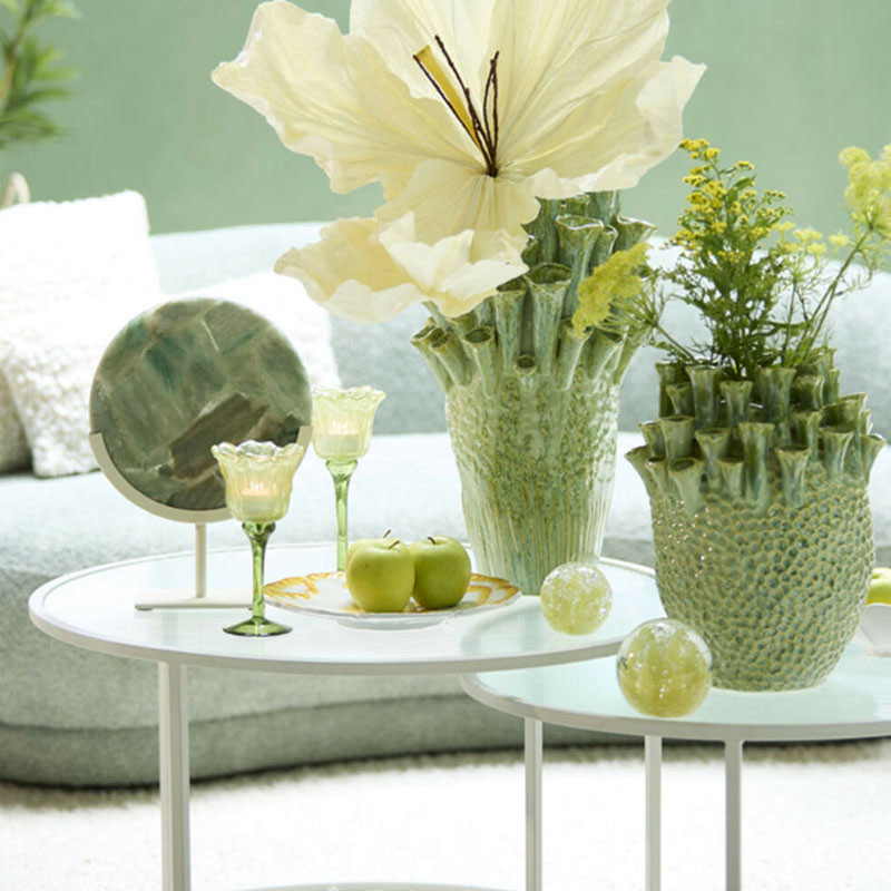 Avec sa teinte jaune éclatante et ses motifs délicatement inspirés des coraux, le sulfure verre Coral jaune illumine discrètement chaque espace.