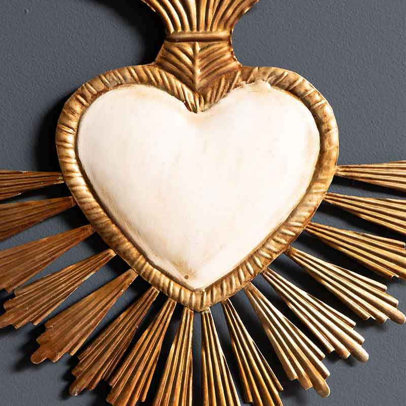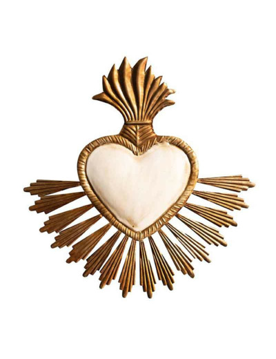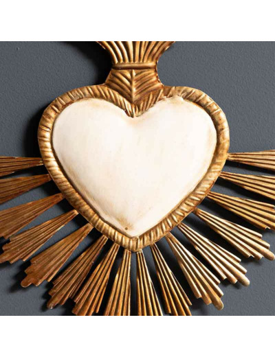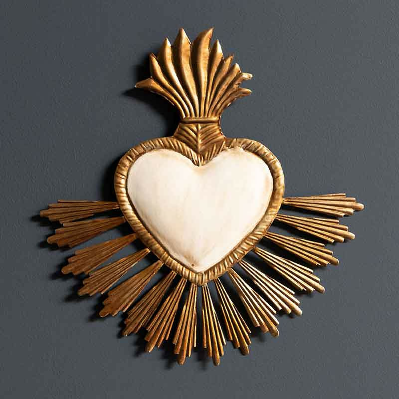 Dans un salon ou une chambre, ce coeur doré devient un point focal plein de caractère et de symbolisme.