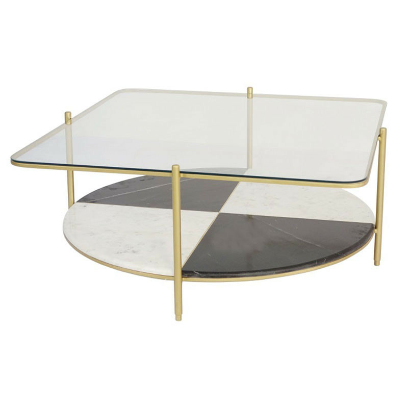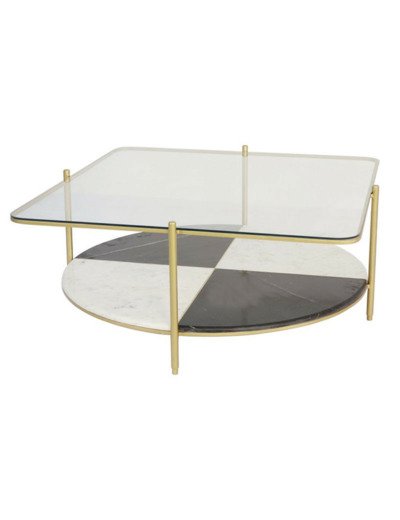 Transformez votre salon avec la table basse "Duo Contraste", bien plus qu'un meuble : c'est une déclaration de style ! Laissez-vous séduire par l'alliance spectaculaire du verre et du marbre en damier, sublimée par des touches dorées.