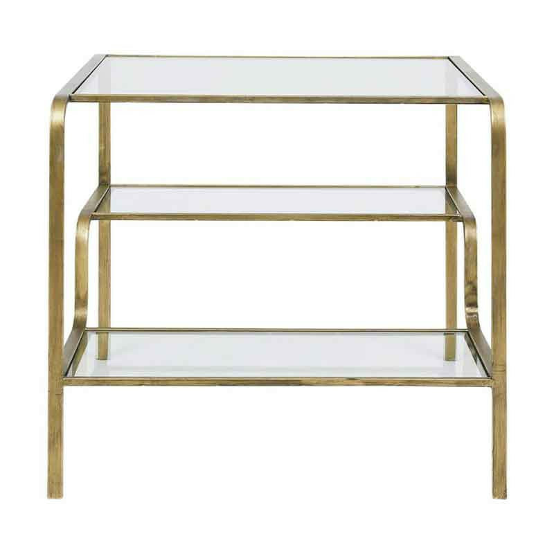 Matériaux Nobles : Structure en métal finition dorée/laiton et plateaux en verre trempé.