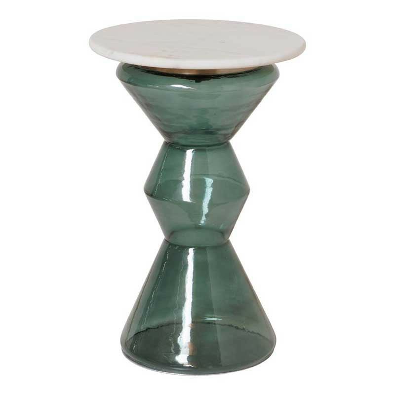 Cette table d'appoint bleue verte en forme de sablier avec un plateau blanc en marbre peut être placée dans divers endroits de votre maison, tels que le salon, la chambre à coucher, le bureau, ou un espace de détente, ajoutant une touche de design et de modernité où que vous choisissiez de la mettre.