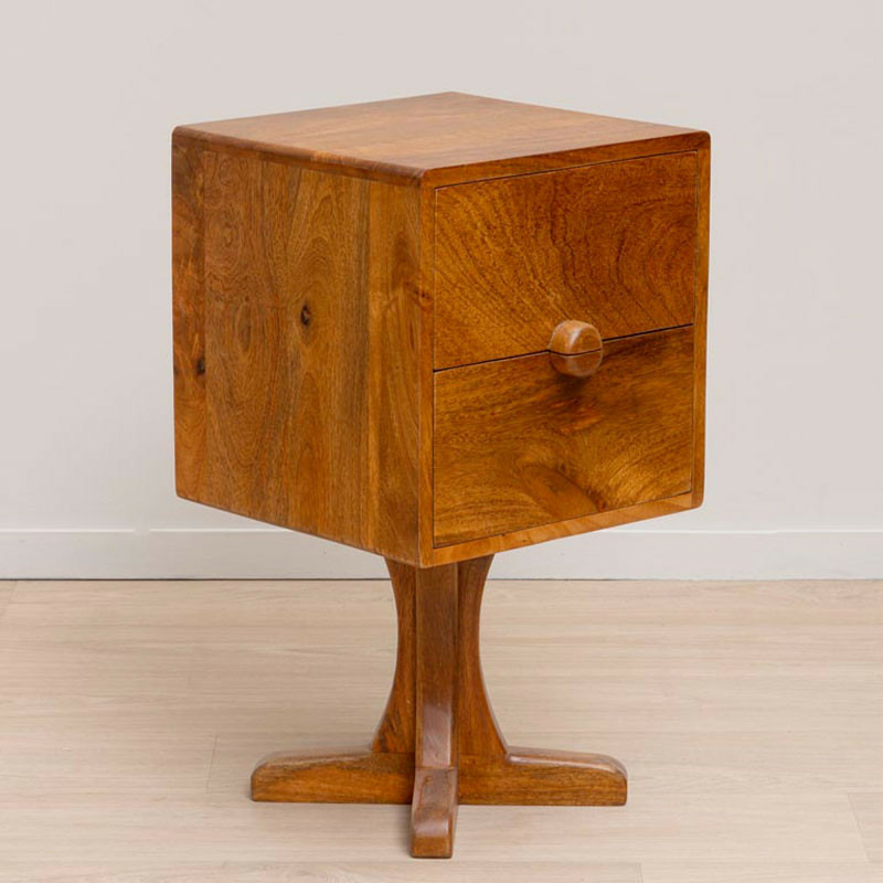 Son design haut et compact le rend idéal pour des espaces restreints nécessitant une solution de rangement verticale, comme la fin d'un couloir où il peut servir de support pour un téléphone ou un vide-poche décoratif.