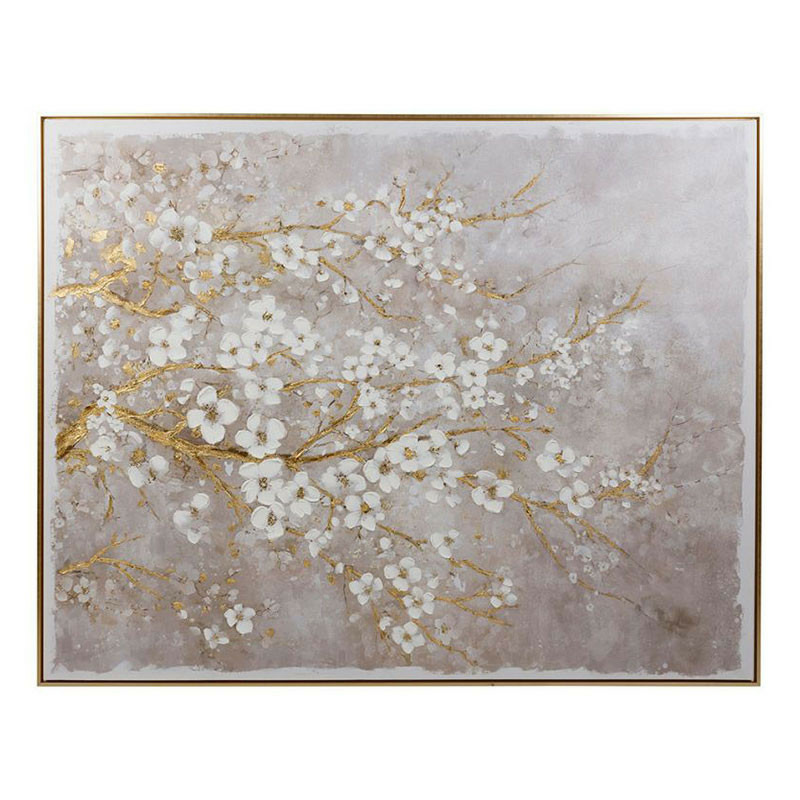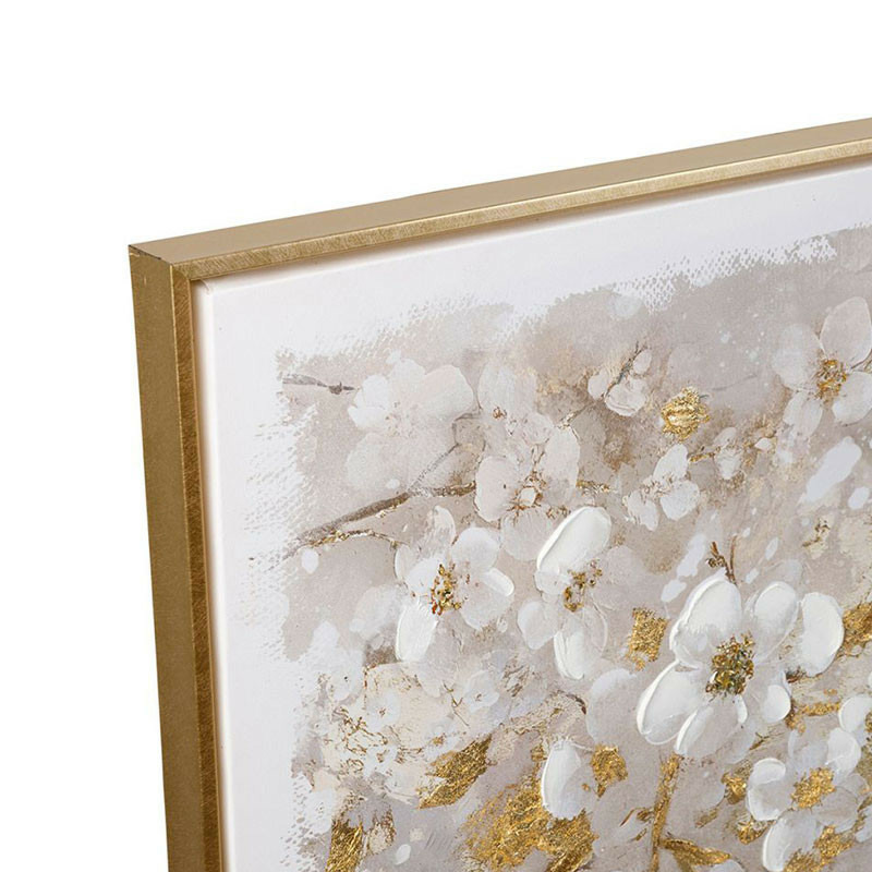 Design Lumineux : Les touches de doré appliqué à la feuille d'or créent un effet de volume vaporeux et éclatant, évoquant la poésie de la nature en pleine éclosion sous les rayons du soleil.