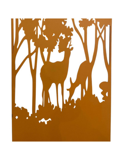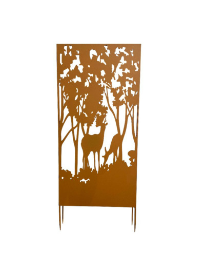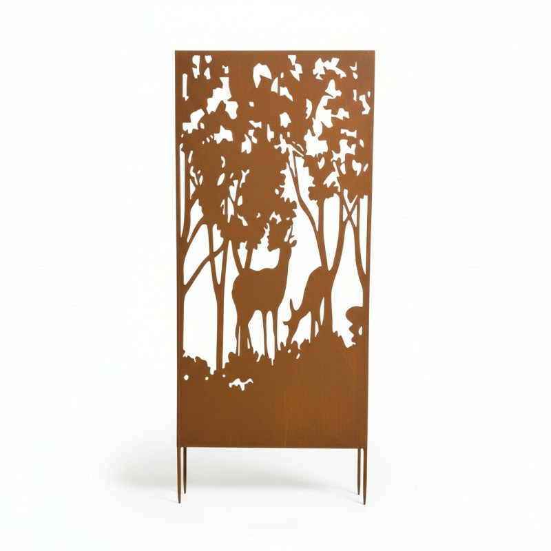 Apportez une touche de nature et d'élégance rustique à votre extérieur avec notre treillage couleur rouille représentant une forêt et un couple de chevreuils, transformez votre jardin en un havre de paix.