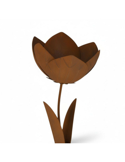 Son design minimaliste et élégant met en valeur la forme classique de la fleur, tandis que la texture rouillée apporte un contraste intéressant et une touche rustique.