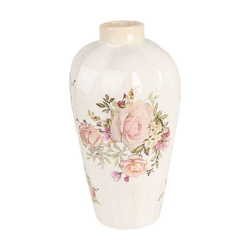 Ce vase en céramique, avec son charme délicat et ses motifs floraux, pourrait trouver sa place dans divers endroits de votre intérieur, comme par exemple votre salon, où il apporterait du charme.