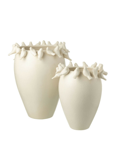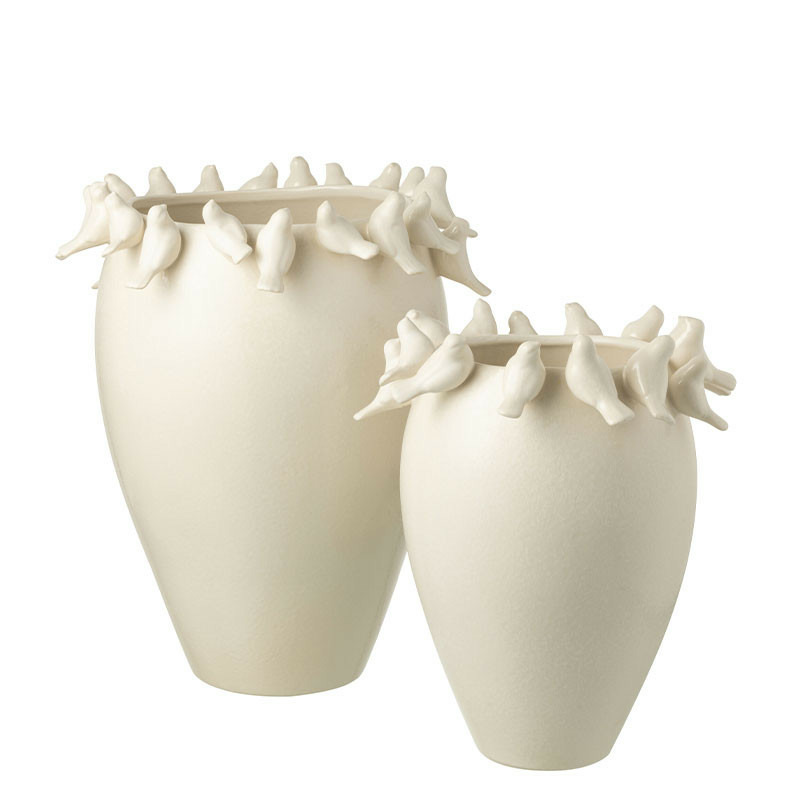 Poésie et Légèreté : La frise d'oiseaux apporte une note ludique et raffinée, transformant le vase en véritable œuvre d'art décorative, même sans fleurs.