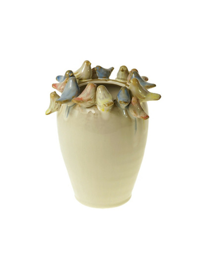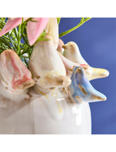 Pour mettre en valeur ce vase décoratif avec ses charmants oiseaux, privilégiez un emplacement qui permet d'admirer la finesse des détails et l'effet des couleurs pastel.