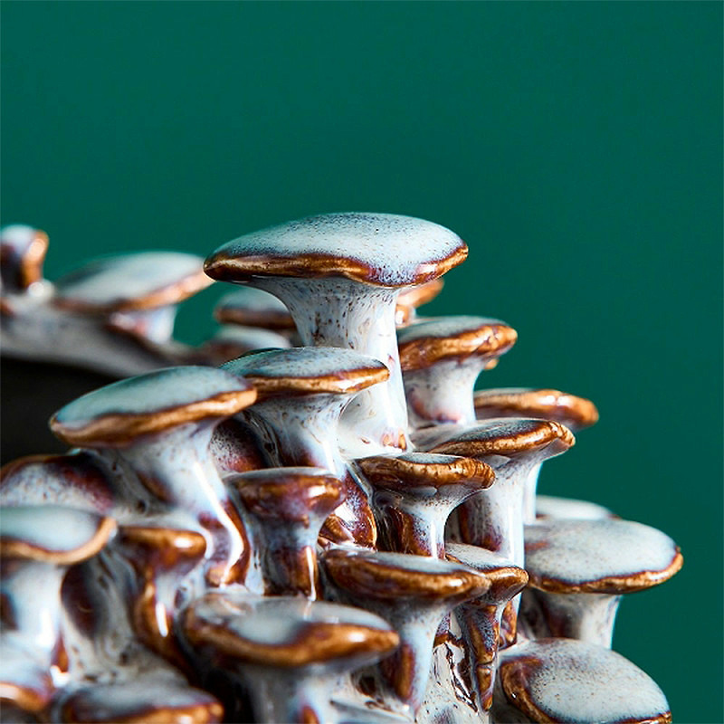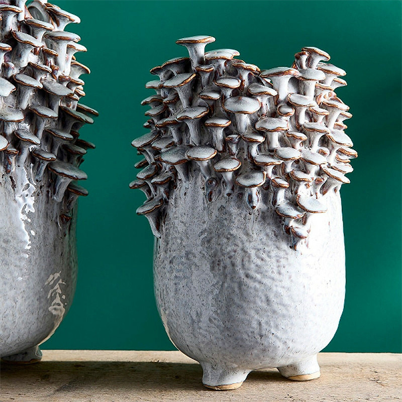 Ce vase champignons, véritable pièce maîtresse sculpturale, mérite une place où son design unique pourra être admiré.