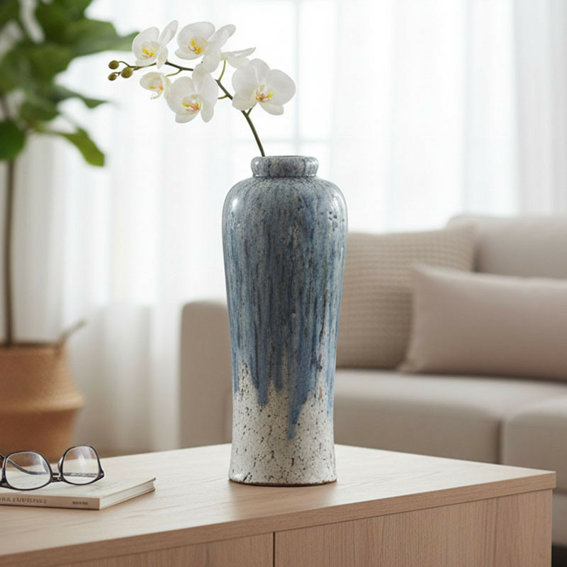 Texture craquelée authentique : La base du vase présente une finition craquelée qui souligne le caractère noble et intemporel de la terre cuite.