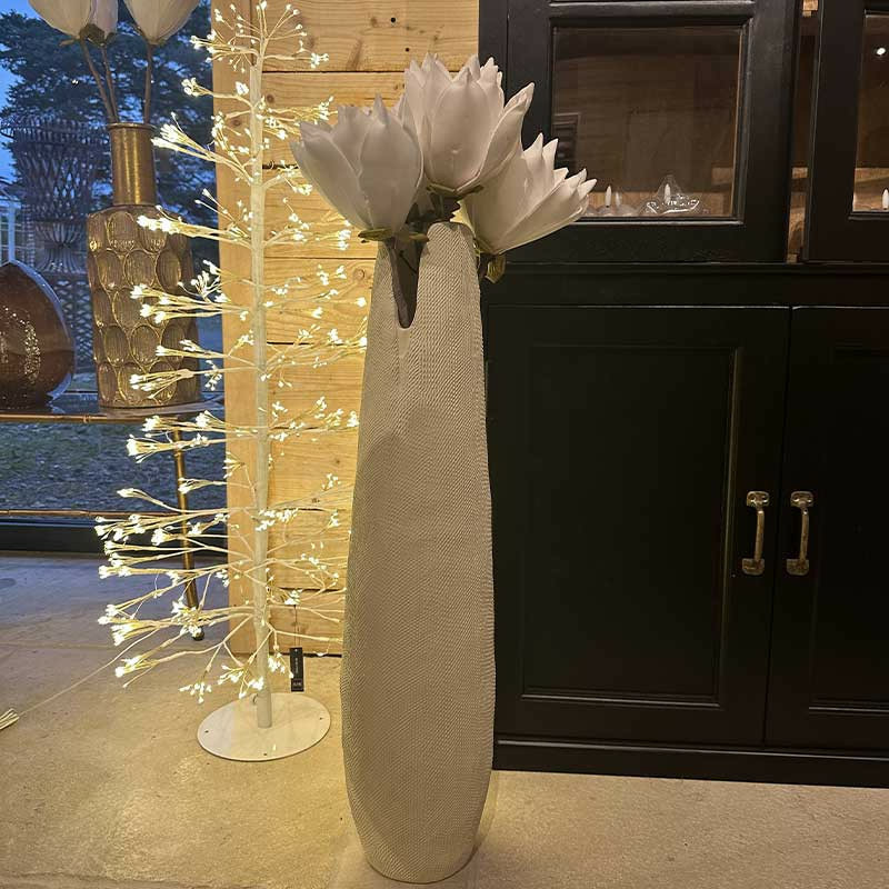 Placez-le sur une surface de couleur contrastée (par exemple, une table en bois foncé, en verre ou en métal noir) pour que sa texture et son blanc éclatent.