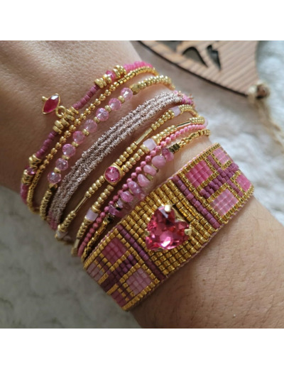Ce magnifique BRACELET, des perles cube rose, gold doré 24k, crystal , quartz rose et tourmaline sont à l’honneur.