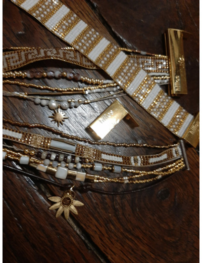 Deux tissages de perles de verre et de son fermoir interchangeable aimanté finition dorée or 24k (45mm)