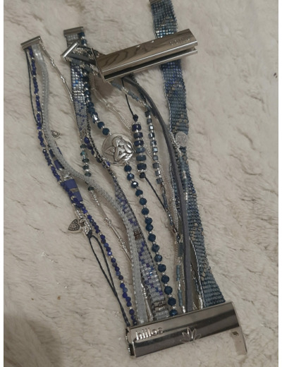 Elle se compose de 4 Liens fins interchangeables de 11 mm et de son fermoir aimanté interchangeable Hiilos finition Plaqué Platine de 45 mm.
