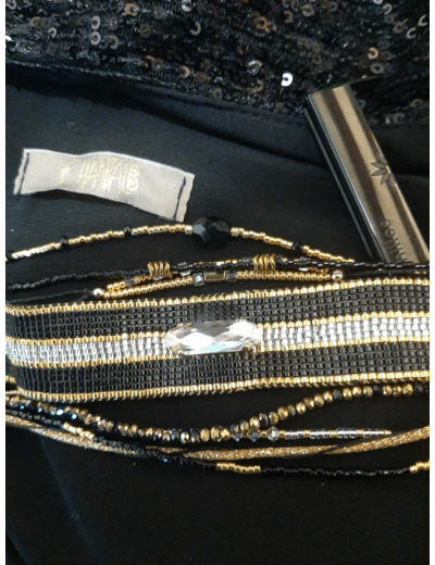 Cette magnifique manchette se compose de perles noir, gold doré 24k, crystal .