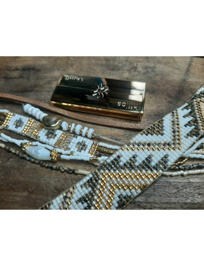 Un tissage de perles de verres fait main de 20mm, un tissage perles et fils de soie et de son fermoir aimanté interchangeable Hiilos finition doré or (45 mm)